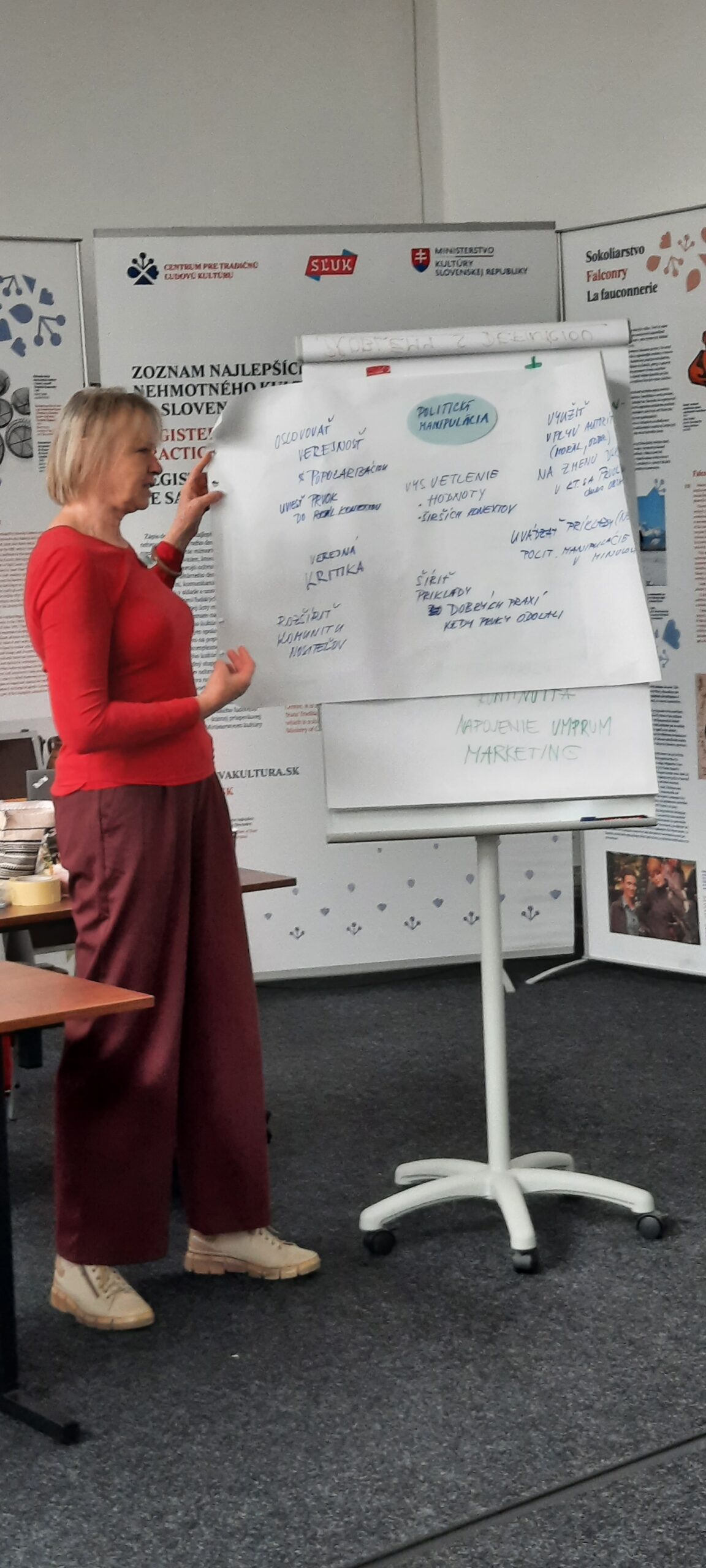 Katarína Popelková prezentuje výsledok skupinovej aktivity v rámci seminára o UNESCO Dohovore na ochranu nehmotného kultúrneho dedičstva